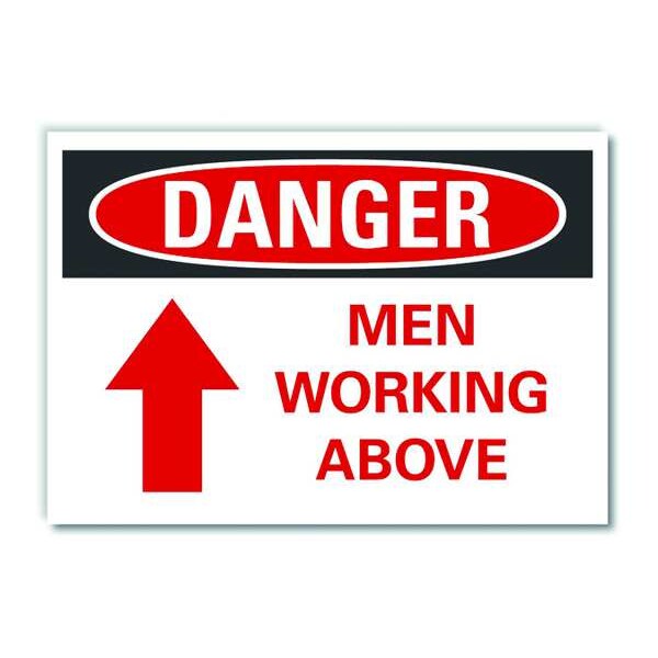 Danger, Men Working Above, 7 in W x 5 in H, Horizontal Rectangle, Polyester, LCU4-0190-ND_7X5