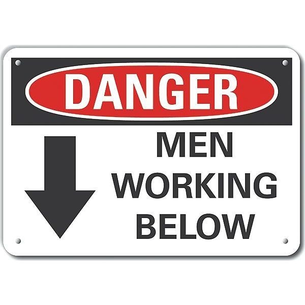 Danger, Men Working Below, 14 in W x 10 in H, Horizontal Rectangle, Plastic, LCU4-0185-NP_14X10