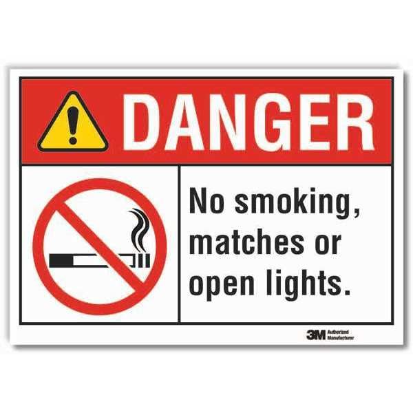 Danger, No Smoking Matches or Open Lights, 7 in W x 5 in H, Horizontal Rectangle