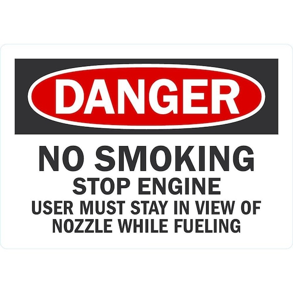 Danger No Smoking Stop Engine User Must Stay, 5x3.5, Non-Reflective, White