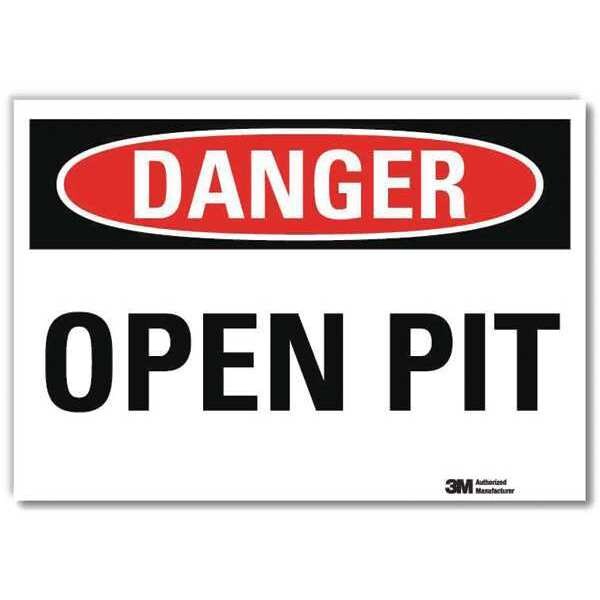 Danger Sign, Sign Subject Matter Accident Prevention, Height 10 In., Width 14 In., Sign Material Vinyl, Sign Mounting Style Adhesive Surface, Header Danger, Legend Open Pit, Printed Language English, Sign Shape Rectangle