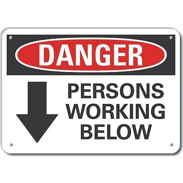 Danger, Persons Working Below, 10 in W x 7 in H, Vertical Rectangle, Plastic, LCU4-0187-NP_10X7