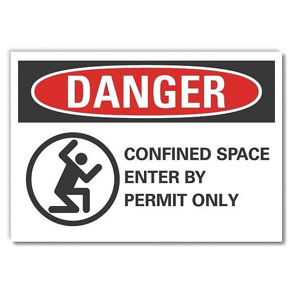 Danger Sign, Horizontal Rectangle, Number of Printed Sides 1, English, Sign Format ANSI/OSHA Format, Sign Legend Confined Space Enter By Permit Only, Sign Legend Background Color White, Sign Legend Style Symbol and Text