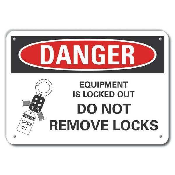 Danger Sign, Horizontal Rectangle, Number of Printed Sides 1, English, Sign Format ANSI/OSHA Format, Sign Legend Equipment Is Locked Out, Sign Legend Background Color White, Sign Legend Style Symbol and Text