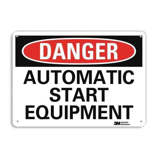 Danger Sign, Horizontal Rectangle, Number of Printed Sides 1, English, Sign Format Traditional OSHA, Sign Legend Automatic Start Equipment, Sign Legend Background Color White, Sign Legend Style Text