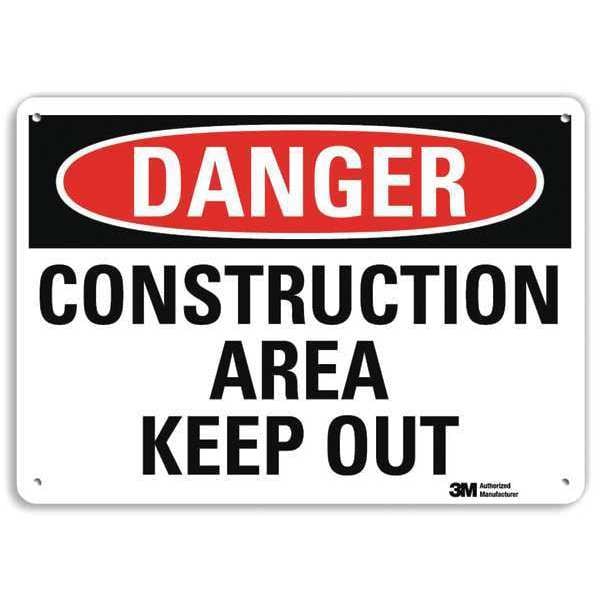 Danger Sign, Horizontal Rectangle, Number of Printed Sides 1, English, Sign Format Traditional OSHA, Sign Legend Construction Area Keep Out, Sign Legend Background Color White, Sign Legend Style Text