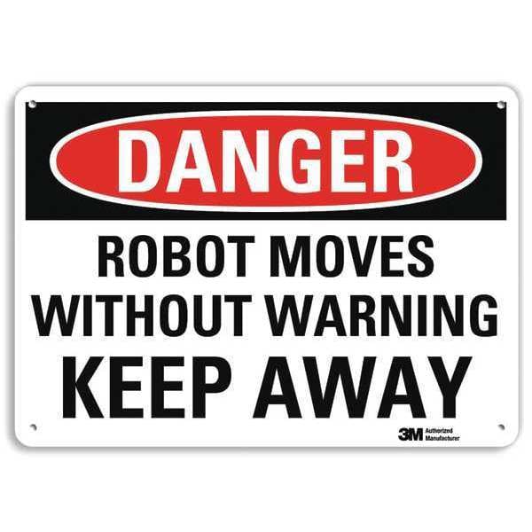 Danger Sign, Horizontal Rectangle, Number of Printed Sides 1, English, Sign Format Traditional OSHA, Sign Legend Robot Moves Without Warning Keep Away, Sign Legend Background Color White, Sign Legend Style Text