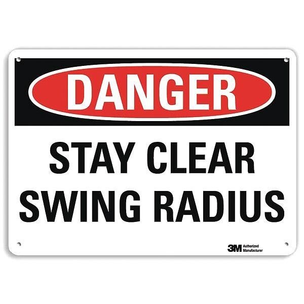 Danger Sign, Horizontal Rectangle, Number of Printed Sides 1, English, Sign Format Traditional OSHA, Sign Legend Stay Clear Swing Radius, Sign Legend Background Color White, Sign Legend Style Text