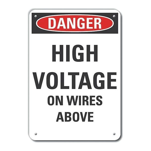 Danger Sign, Horizontal Rectangle, Number of Printed Sides 1, English, Sign Format Traditional OSHA, Sign Legend High Voltage On Wires Above, Sign Legend Background Color White, Sign Legend Style Text