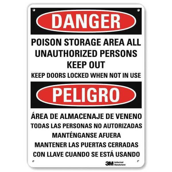 Danger Sign, Vertical Rectangle, Number of Printed Sides 1, English, Sign Format Traditional OSHA, Sign Legend Poison Storage Area All Unauthorized Persons Keep Out Keep Doors Locked When Not In Use/Area De Almacenaje De Veneno To Das Las Personas No Autorizadas Mantengase Afuera Mantener Las Puertas Cerradas Con Llave Cuando Se Esta Usando, Sign Legend Background Color White, Sign Legend Style Text