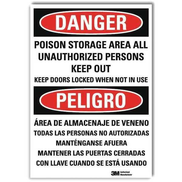 Danger Sign, Horizontal Rectangle, Number of Printed Sides 1, English, Sign Format Traditional OSHA, Sign Legend Poison Storage Area All Unauthorized Persons Keep Out Keep Doors Locked When Not In Use/Area De Almacenaje De Veneno To Das Las Personas No Autorizadas Mantengase Afuera Mantener Las Puertas Cerradas Con Llave Cuando Se Esta Usando, Sign Legend Background Color White, Sign Legend Style Text