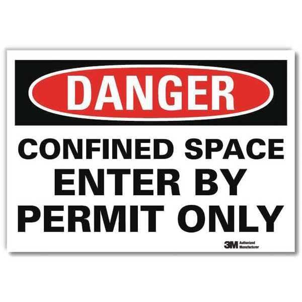 Danger Sign, Vertical Rectangle, Number of Printed Sides 1, English, Sign Format Traditional OSHA, Sign Legend Confined Space Enter By Permit Only, Sign Legend Background Color White, Sign Legend Style Text