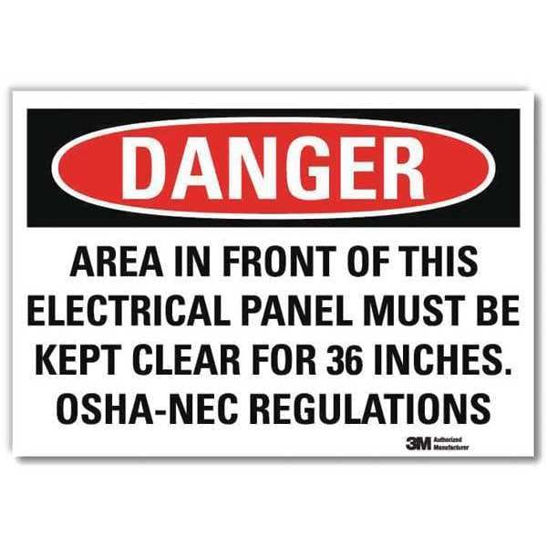 Danger Sign, Vertical Rectangle, Number of Printed Sides 1, English, Sign Format Traditional OSHA, Sign Legend Area In Front Of This Electrical Panel Must Be Kept Clear For 36 Inches Osha-Nec Regulation, Sign Legend Background Color White, Sign Legend Style Text