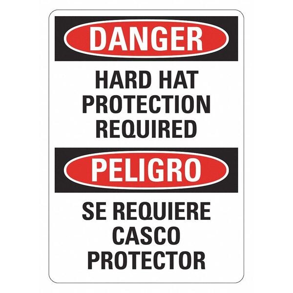 Danger Sign, Vertical Rectangle, Number of Printed Sides 1, English, Sign Format Traditional OSHA, Sign Legend Hard Hat Protection Required/Se Requiere Casco Protector, Sign Legend Background Color White, Sign Legend Style Text