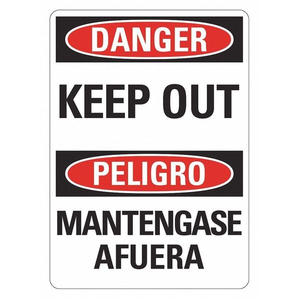Danger Sign, Vertical Rectangle, Number of Printed Sides 1, English, Sign Format Traditional OSHA, Sign Legend Keep Out/Mantengase Afuera, Sign Legend Background Color White, Sign Legend Style Text
