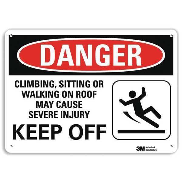 Danger Sign, Horizontal Rectangle, Number of Printed Sides 1, English, Sign Format Traditional OSHA, Sign Legend Climbing, Sitting Or Walking On Roof May Cause Severe Injury Keep Off, Sign Legend Background Color White, Sign Legend Style Symbol and Text