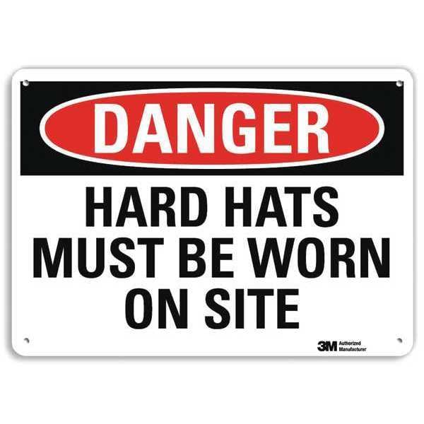 Danger Sign, Vertical Rectangle, Number of Printed Sides 1, English, Sign Format Traditional OSHA, Sign Legend Hard Hats Must Be Worn On Site, Sign Legend Background Color White, Sign Legend Style Text