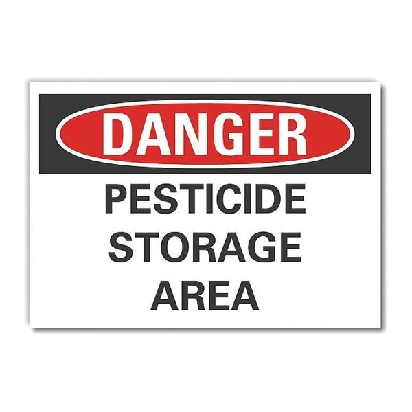 Danger Sign, Horizontal Rectangle, Number of Printed Sides 1, English, Sign Format Traditional OSHA, Sign Legend Pesticide Storage Area, Sign Legend Background Color White, Sign Legend Style Text