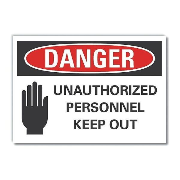 Danger Sign, Horizontal Rectangle, Number of Printed Sides 1, English, Sign Format ANSI/OSHA Format, Sign Legend Unauthorized Personnel Keep Out, Sign Legend Background Color White, Sign Legend Style Symbol and Text