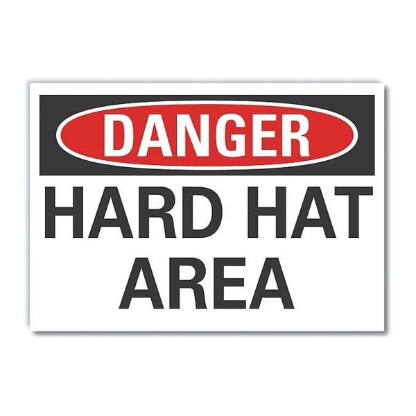 Danger Sign, Horizontal Rectangle, Number of Printed Sides 1, English, Sign Format Traditional OSHA, Sign Legend Hard Hat Area, Sign Legend Background Color White, Sign Legend Style Text