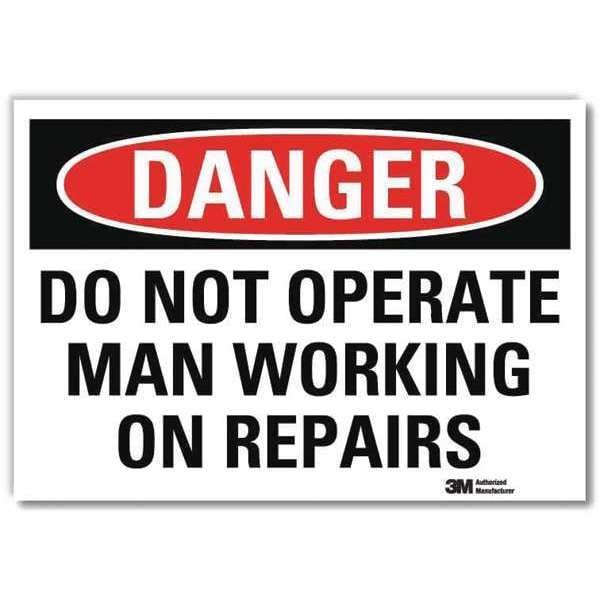 Danger Sign, Horizontal Rectangle, Number of Printed Sides 1, English, Sign Format Traditional OSHA, Sign Legend Do Not Operate Man Working On Repairs, Sign Legend Background Color White, Sign Legend Style Text
