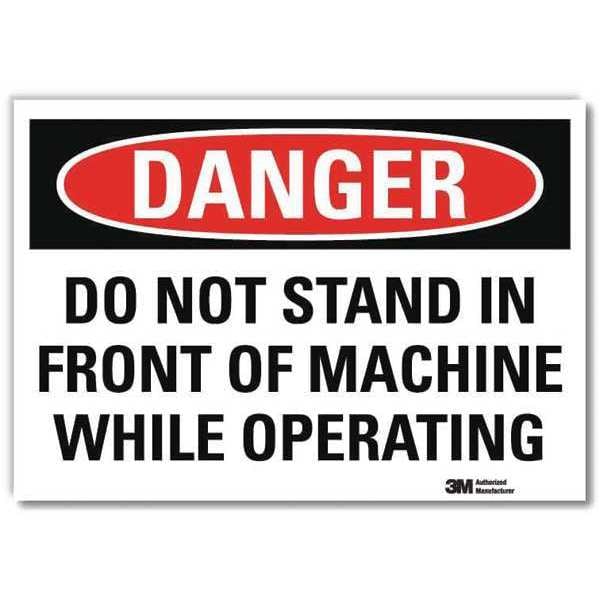 Danger Sign, Horizontal Rectangle, Number of Printed Sides 1, English, Sign Format Traditional OSHA, Sign Legend Do Not Stand In Front Of Machine While Operating, Sign Legend Background Color White, Sign Legend Style Text