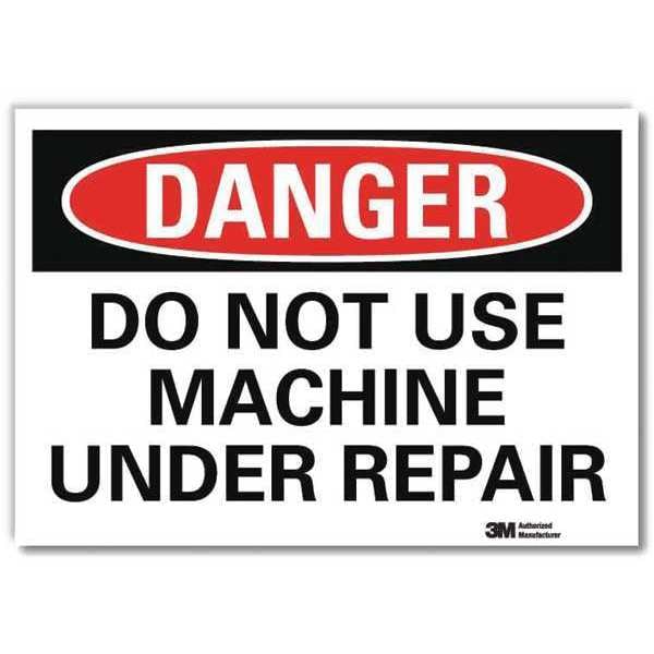 Danger Sign, Horizontal Rectangle, Number of Printed Sides 1, English, Sign Format Traditional OSHA, Sign Legend Do Not Use Machine Under Repair, Sign Legend Background Color White, Sign Legend Style Text