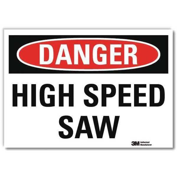 Danger Sign, Horizontal Rectangle, Number of Printed Sides 1, English, Sign Format Traditional OSHA, Sign Legend High Speed Saw, Sign Legend Background Color White, Sign Legend Style Text