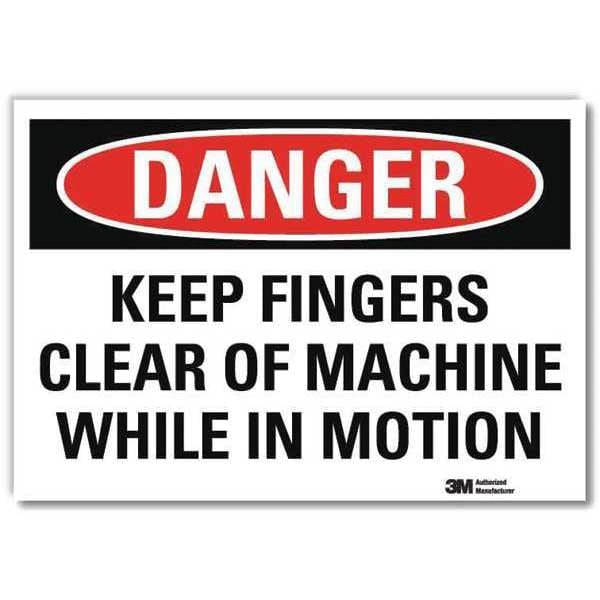 Danger Sign, Horizontal Rectangle, Number of Printed Sides 1, English, Sign Format Traditional OSHA, Sign Legend Keep Fingers Clear Of Machine While In Motion, Sign Legend Background Color White, Sign Legend Style Text