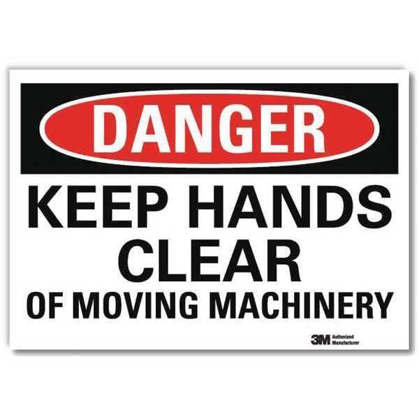 Danger Sign, Horizontal Rectangle, Number of Printed Sides 1, English, Sign Format Traditional OSHA, Sign Legend Keep Hands Clear Of Moving Machinery, Sign Legend Background Color White, Sign Legend Style Text
