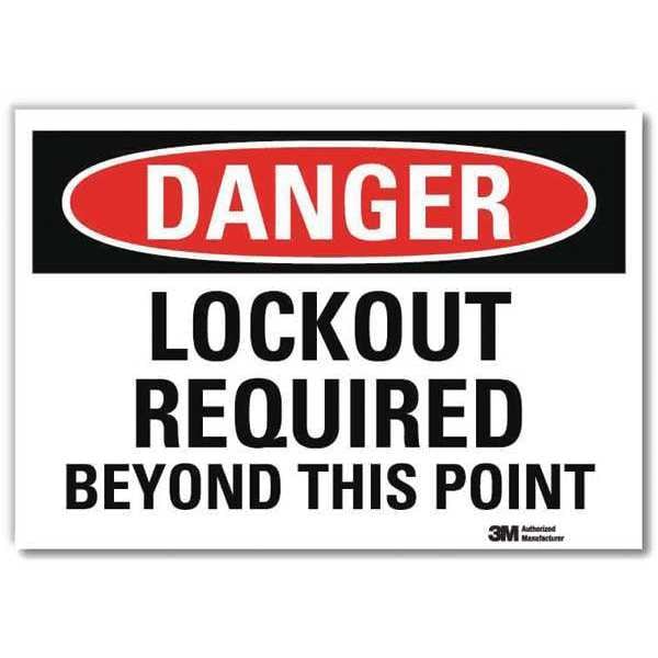 Danger Sign, Horizontal Rectangle, Number of Printed Sides 1, English, Sign Format Traditional OSHA, Sign Legend Lockout Required Beyond This Point, Sign Legend Background Color White, Sign Legend Style Text