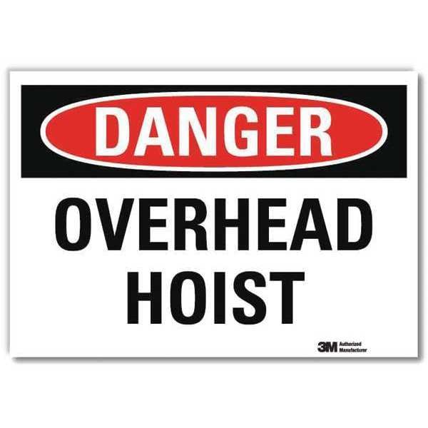 Danger Sign, Horizontal Rectangle, Number of Printed Sides 1, English, Sign Format Traditional OSHA, Sign Legend Overhead Hoist, Sign Legend Background Color White, Sign Legend Style Text
