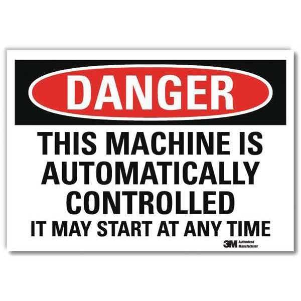 Danger Sign, Horizontal Rectangle, Number of Printed Sides 1, English, Sign Format Traditional OSHA, Sign Legend This Machine Is Automatically Controlled It May Start At Any Time, Sign Legend Background Color White, Sign Legend Style Text