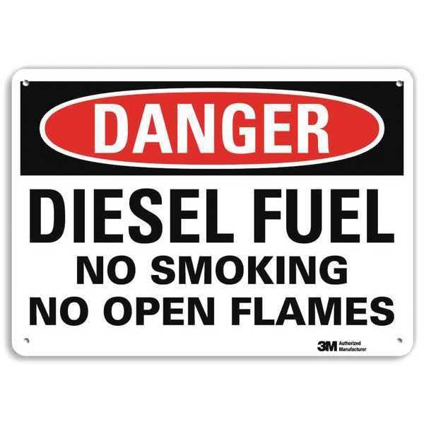 Danger Sign, Vertical Rectangle, Number of Printed Sides 1, English, Sign Format Traditional OSHA, Sign Legend Diesel Fuel No Smoking No Open Flames, Sign Legend Background Color White, Sign Legend Style Text