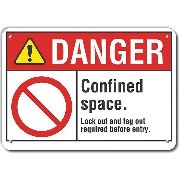 Danger Sign, Vertical Rectangle, Number of Printed Sides 1, English, Sign Format ANSI/OSHA Format, Sign Legend Confined Space. Lock Out And Tag Out Required Before Entry., Sign Legend Background Color White, Sign Legend Style Symbol and Text