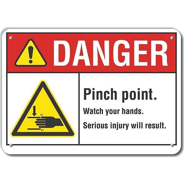 Danger Sign, Vertical Rectangle, Number of Printed Sides 1, English, Sign Format ANSI/OSHA Format, Sign Legend Pinch Points. Watch Your Hands. Serious Injury Will Result., Sign Legend Background Color White, Sign Legend Style Symbol and Text