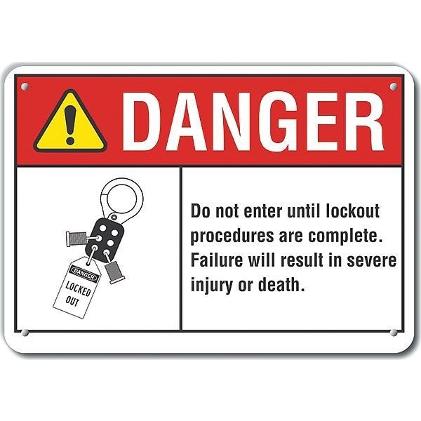 Danger Sign, Vertical Rectangle, Number of Printed Sides 1, English, Sign Format ANSI/OSHA Format, Sign Legend Do Not Enter Until Lockout Procedures Are Complete. Failure Will Result In Severe Injury Or Death., Sign Legend Background Color White, Sign Legend Style Symbol and Text