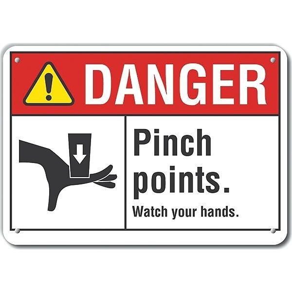 Danger Sign, Vertical Rectangle, Number of Printed Sides 1, English, Sign Format ANSI/OSHA Format, Sign Legend Pinch Points. Watch Your Hands., Sign Legend Background Color White, Sign Legend Style Symbol and Text