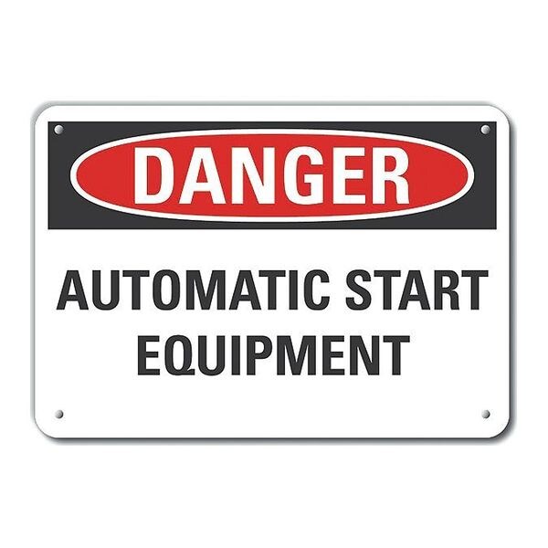Danger Sign, Vertical Rectangle, Number of Printed Sides 1, English, Sign Format Traditional OSHA, Sign Legend Automatic Start Equipment, Sign Legend Background Color White, Sign Legend Style Text