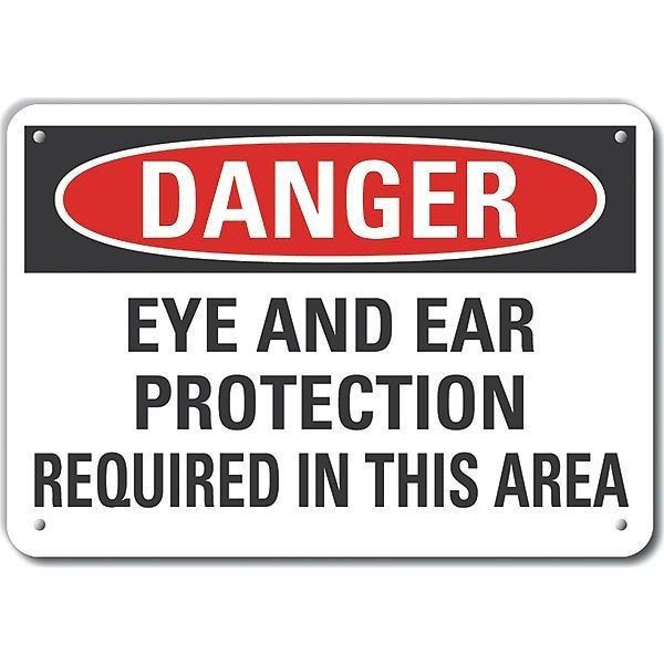 Danger Sign, Vertical Rectangle, Number of Printed Sides 1, English, Sign Format Traditional OSHA, Sign Legend Eye And Ear Protection Required In This Area, Sign Legend Background Color White, Sign Legend Style Text