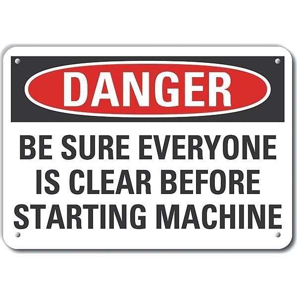 Danger Sign, Vertical Rectangle, Number of Printed Sides 1, English, Sign Format Traditional OSHA, Sign Legend Be Sure Everyone Is Clear Before Starting Machine, Sign Legend Background Color White, Sign Legend Style Text