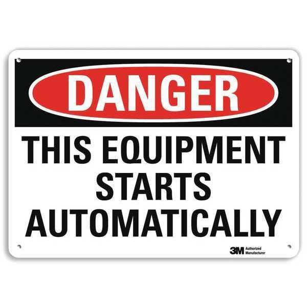 Danger Sign, Vertical Rectangle, Number of Printed Sides 1, English, Sign Format Traditional OSHA, Sign Legend This Equipment Starts Automatically, Sign Legend Background Color White, Sign Legend Style Text