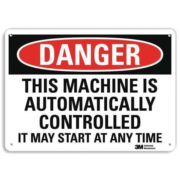 Danger Sign, Vertical Rectangle, Number of Printed Sides 1, English, Sign Format Traditional OSHA, Sign Legend This Machine Is Automatically Controlled It May Start At Any Time, Sign Legend Background Color White, Sign Legend Style Text