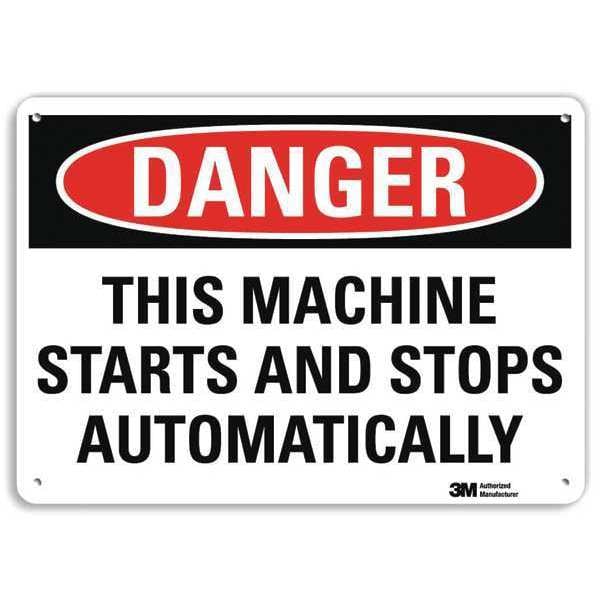 Danger Sign, Vertical Rectangle, Number of Printed Sides 1, English, Sign Format Traditional OSHA, Sign Legend This Machine Starts And Stops Automatically, Sign Legend Background Color White, Sign Legend Style Text