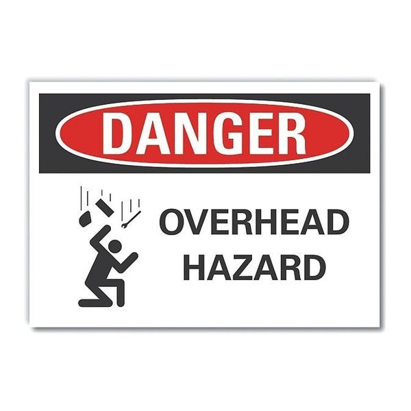 Danger Sign, Vertical Rectangle, Number of Printed Sides 1, English, Sign Format ANSI/OSHA Format, Sign Legend Overhead Hazard, Sign Legend Background Color White, Sign Legend Style Symbol and Text