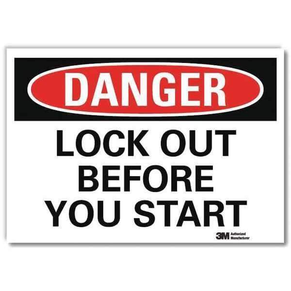 Danger Sign, Vertical Rectangle, Number of Printed Sides 1, English, Sign Format Traditional OSHA, Sign Legend Lock Out Before Start, Sign Legend Background Color White, Sign Legend Style Text
