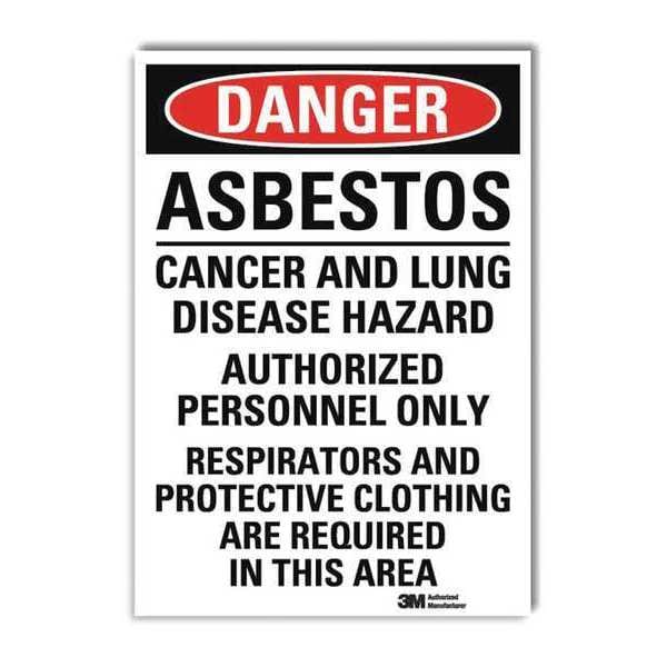 Danger Sign, Vertical Rectangle, Number of Printed Sides 1, English, Sign Format Traditional OSHA, Sign Legend Asbestos Cancer And Lung Disease Hazard Authorized Personnel Only Respirators And Protective Clothing Are Required In This Area, Sign Legend Background Color White, Sign Legend Style Text