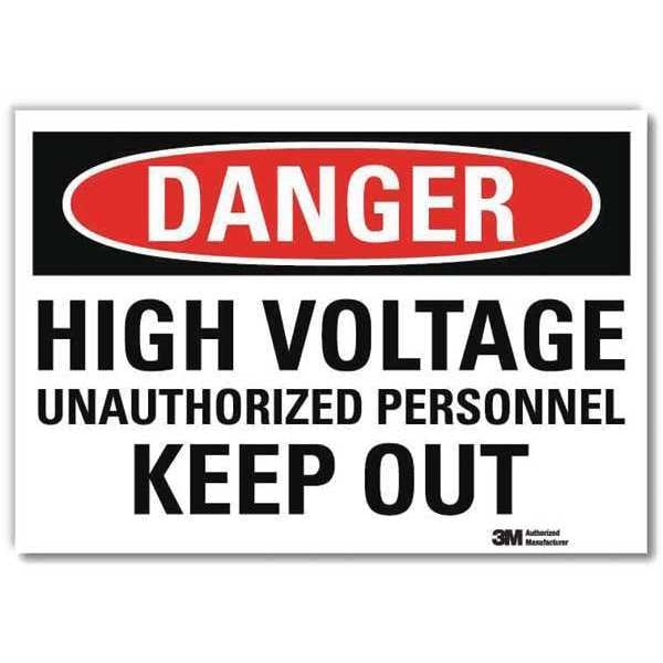 Danger Sign, Horizontal Rectangle, Number of Printed Sides 1, English, Sign Format Traditional OSHA, Sign Legend High Voltage Unauthorized Personnel Keep Out, Sign Legend Background Color White, Sign Legend Style Text