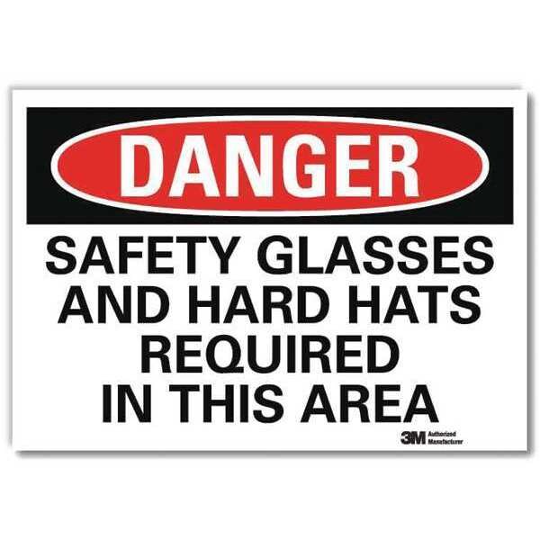 Danger Sign, Horizontal Rectangle, Number of Printed Sides 1, English, Sign Format Traditional OSHA, Sign Legend Safety Glasses And Hard Hats Required In This Area, Sign Legend Background Color White, Sign Legend Style Text