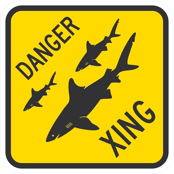 Danger Xing (W/Shark Graphic), 12x12, Engineer Grade, Yellow